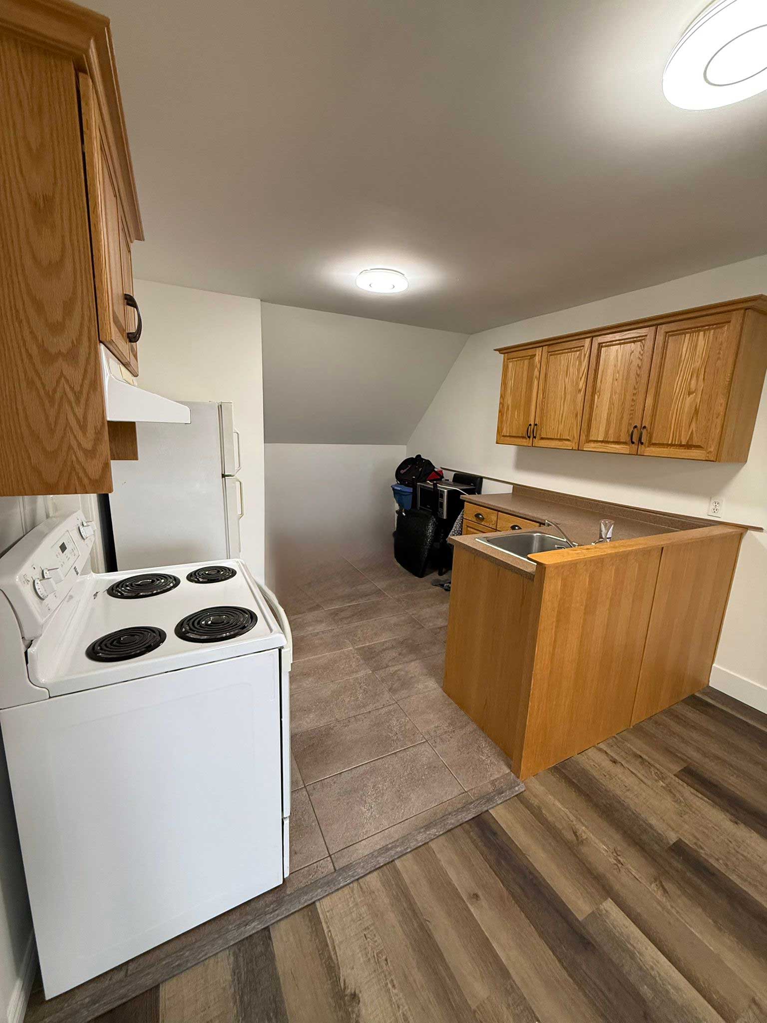 This unit is well finished and has one bedroom, one bath with good kitchen and a dining/living area. All Utilities Included. Ideal for a single or professional couple. Quick access to the highway. Coin-operated laundry.